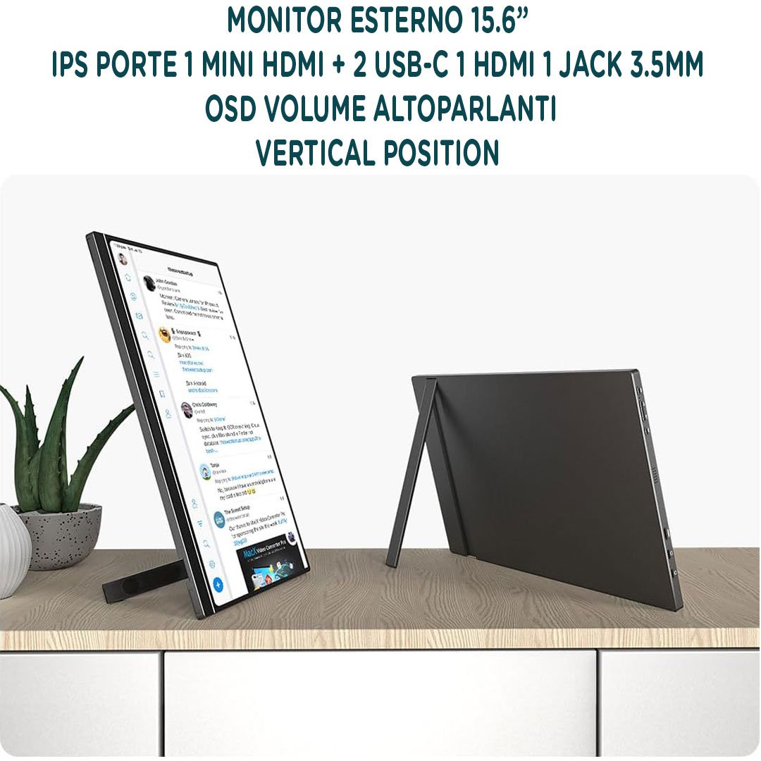 Monitor Esterno 15.6" Full HD 1080P Alluminio Case Speaker 2x1W Stand Tilt 20°-45° No Touch.