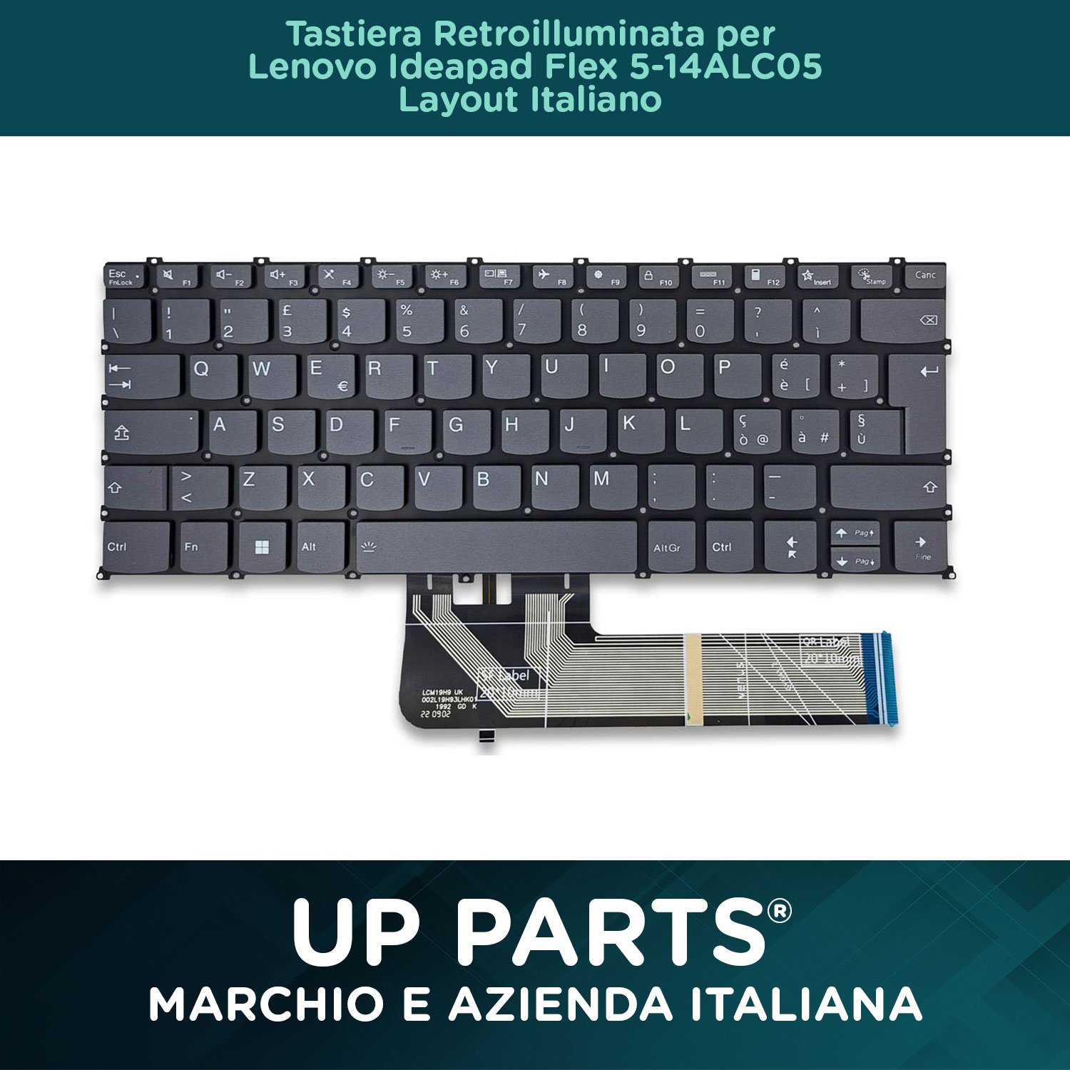 Tastiera per Lenovo Ideapad Flex 5-14ALC05 senza frame, tasti grigi, retroilluminata.